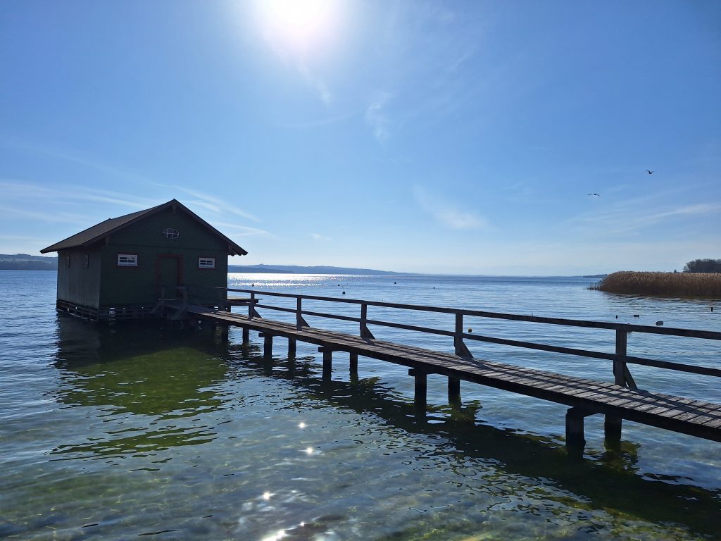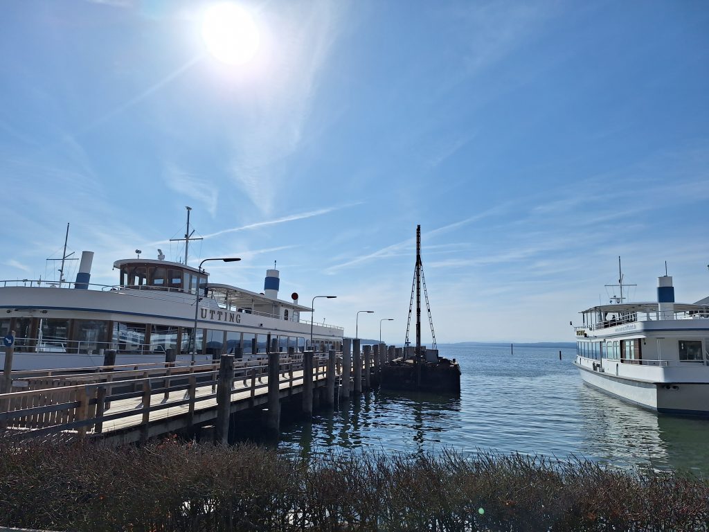 Nun hat man es wieder auf die andere Seeseite geschafft. Die Wege führen teilweise mitten durch die Gemeinden Dießen, Riederau, Utting und zuletzt zum Startpunkt nach Schöndorf. Hier und da kommt man zurück an den See, jedoch nur, wenn dort auch eine Schiffsanlegestelle ist. Diese Plätze sind jedoch schon sehenswert und laden stets zum Verweilen ein. Der Weg von Riederau nach Utting hat allerdings noch seinen besonderen „Charme“. Man darf direkt zwischen den Bahnschienen und einem Wäldchen laufen, wodurch ein etwas urbaner Charakter der Laufstrecke entsteht. Hier heißt es wohl „hate it or love it“.