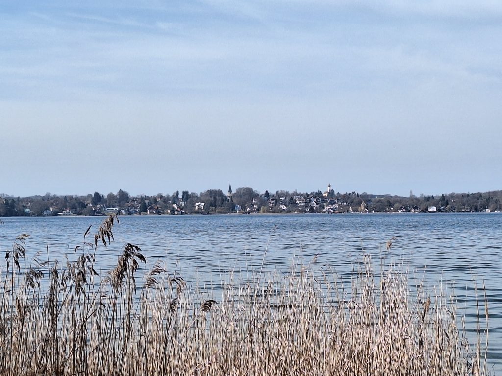Bei der Größe des Ammersees ist es aber dann doch unausweichlich. Man läuft entlang einer Landstraße über Aidenried bis nach Fischen. Nichts dramatisch Schlimmes aber der Glanz geht etwas verloren. In Fischen angekommen gelangt man dann an bzw. in den Vogelschutzbereich. Viel Schilf und freie Flächen. Vom See ist man zwar an dieser Stelle etwas weiter entfernt, jedoch macht es trotzdem viel Spaß durch diesen Bereich zu joggen. Man ist von toller schöner Natur umgeben. Auch wenn man den Eindruck hat einen Umweg zu machen (eigentlich ist das nicht nur ein Eindruck), auf den Wanderwegen zu bleiben lohnt sich. Bei meiner ersten Umrundung wollte ich an dieser Stelle etwas abkürzen und musste eine Weile direkt auf einer Schnellstraße laufen. Beim Versuch diese zu verlassen kam ich dann auf mehrere Sackgassen und machte Bekanntschaft mit einem unfreundlichen Bienenvolk (#autsch). Leichter wurde der Weg also nicht.
