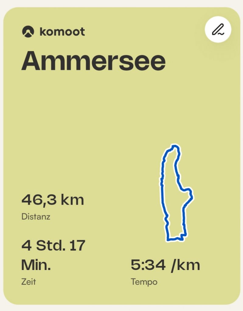 In Schöndorf kämpft man sich dann noch durch auf- und absteigende Straßen bis man die finalen 300 Meter erreicht und an der Promenade mit den schönen Bootshäusern entlanglaufen kann. Ein kleiner Ultra-Marathon wurde soeben absolviert, denn der Umfang des Sees beträgt tatsächlich um die 46 km. In Schöndorf selbst kann man sich dann mit einem Eis belohnen. Die Eisdiele mitten in der Ortschaft hat auch kreativere Eissorten. Mein Highlight war „Black Hawaii“, welches eine Mischung aus richtiger Kokosmilch, richtigem Kakao (keine Schokolade) und zur Farbgebeung aus etwas Kohle besteht. Wirklich lecker und wirklich schwarz. Probiert es selber aus! Eis und Seeumrundung! Für den See selbst lässt sich sagen, dass der Weg das Ziel ist, denn an Abwechslung mangelt es hier nicht. Auf zum Ammersee. Aroo!
