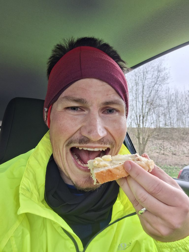 Noch 21 km. Drei Runden. Das erschien nun total machbar. Mein Hunger meldete sich und wollte endlich etwas von dem Schokocroissant, den ich dabei hatte. Zur Dämmerung und den bisherigen Anstrengungen ein wahrer Hochgenuss. Das Tief… hatte ich überhaupt jemals eines? Weg war es. Und um 7:45 Uhr war es dann soweit. 100 km: Geschafft! Ein tolles Gefühl stellte sich ein, obwohl ich allein gelaufen bin. Keine Medaille, kein Zielfoto, aber große Zufriedenheit. Alles hat sehr gut geklappt. Aus dem Motivationsloch rausgekommen war ein großes Anliegen. Die Füße haben mitgemacht. Das Dehnen und Nappen haben dabei mit Sicherheit ein großen Teil dazu beigetragen. Klar zwicken die ersten Meter jeder Runde etwas in den Beinen, doch das ging sehr schnell vorbei. Mit der Verpflegung über Nacht hatte ich auch keinerlei Probleme. Und der letzte Baustein: Gedanklich beeindrucken die Ultra-Distanzen immer weniger. Es bleiben viele Kilometer, jedoch löst die Vorstellung einen 60 km-Run zu joggen keine Gräuel mehr aus.