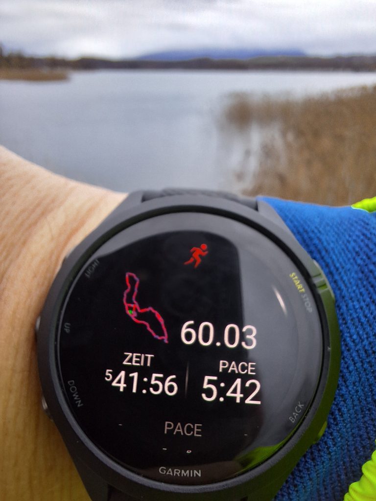 Der Snack war wertvoll, denn jetzt war erst Halbzeit. 60 km waren mein Ziel. Ein weiterer Ultra. Da die Strecke nicht viel hergab, war es diesmal recht zäh. Wer „kleinere“ Strecken vorzieht, der kann sich die Seen auch gerne aufteilen. Eine Umrundung des Waginger Sees bringt ca. 19 km, eine um den Tachinger ca 14 km mit sich. Doch wie gesagt. Es gibt sehr viel schönere Ecken für die es sich lohnt die Laufschuhe anzuziehen. Und jetzt vorwärts: Butter laufen 😉