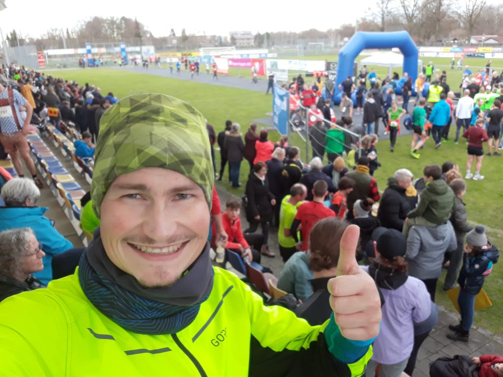 Am Gersthofer Stadion angekommen, habe ich zunächst meine Startunterlagen abgeholt und mich gemächlich warm gemacht. Dann galt es sich kurz vor dem Start in der Masse zu platzieren. Nicht zu weit vorne, um Schnellere nicht zu behindern, aber auch nicht zu weit hinten um ebenfalls keinen Slalom durch andere Teilnehmer laufen zu müssen. Bei dieser Renndistanz machen diese Sekunden schon etwas aus. Man hat ja schließlich seine Wunschzeit im Hinterkopf. Der Lauf beginnt gleich mit einem kleinen Anstieg ins Stadtzentrum und führt dann sofort wieder hinunter ins Stadion. Jetzt geht der eigentliche Lauf erst richtig los. Hinein in die Lechauen heißt es dann. Dort ist der Auenhof der Wendepunkt des Laufs und führt vorbei an einem Pferdehof und einem Golfplatz. Genau hier gilt es nochmal alles aus sich herauszuholen oder sogar den Schlussspurt einzuleiten. Nur noch ca. 2 km, die von vielen Punkten gesäumt sind an denen man sich entlanghangeln kann. Zuletzt führt die Strecke über die Lechbrücke und ins Stadion hinein, wo abschließend die finalen Meter des Laufs und eben auch des Kalenderjahres in Form einer Stadionrunde zu absolvieren sind. „Nochmal schneller. Auf geht´s!“ Alles Kopfsache. Gerade bei den letzten beiden Kilometern kann man noch viel Zeit und einiges an Plätzen reinholen. Auf dem Ranking sieht das nicht nach viel aus, fühlt sich aber zum Abschluss super an.