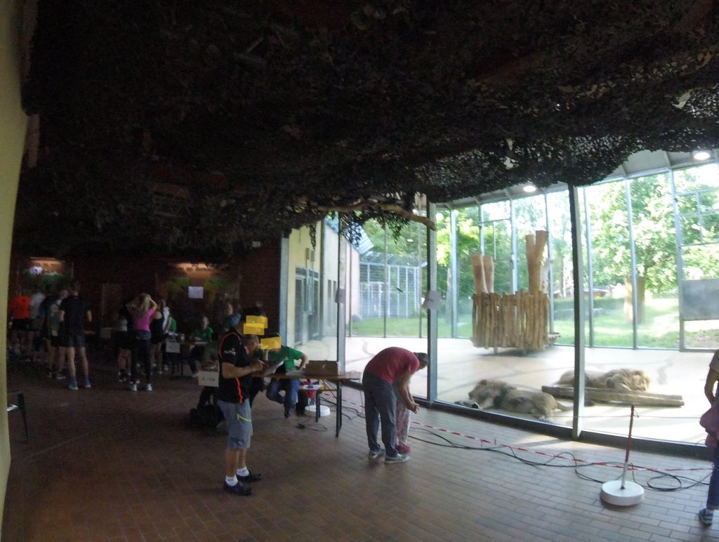 Und ob ich Lust hatte! Ca. 12 Stunden später stand ich dann mit Laufklamotten im Zoo. Was für ein cooles Setting! Während ich noch auf meine Freundin von der die Nachricht kam wartete, konnte ich mir neben den Tieren auch die Läufer ansehen. Der 15. Augsburger Zoolauf hatte etwas von einem Firmenlauf. Also quasi auch alle in bestimmte Spezies unterteilbar, da alle in eigene Felle (Firmenshirts) gekleidet waren. Eine Gruppe lies sich etwas mehr von der Lauflandschaft inspirieren als die anderen. Sie kamen in Nashornkostümen =). Im Löwenhaus selbst pirschten sich die Läufer an fünf Personen ran. Ihre Fluchtmöglichkeiten waren sehr schlecht. Hinter ihnen war eine Glasscheibe, welche sie von einer Löwengruppe trennte. Vor ihnen versperrten ihnen Holzbalken (oder war es Bierbänke?) den Fluchtweg. Da erst bemerkte ich die Laptops. Es waren die Leute von der Anmeldung.